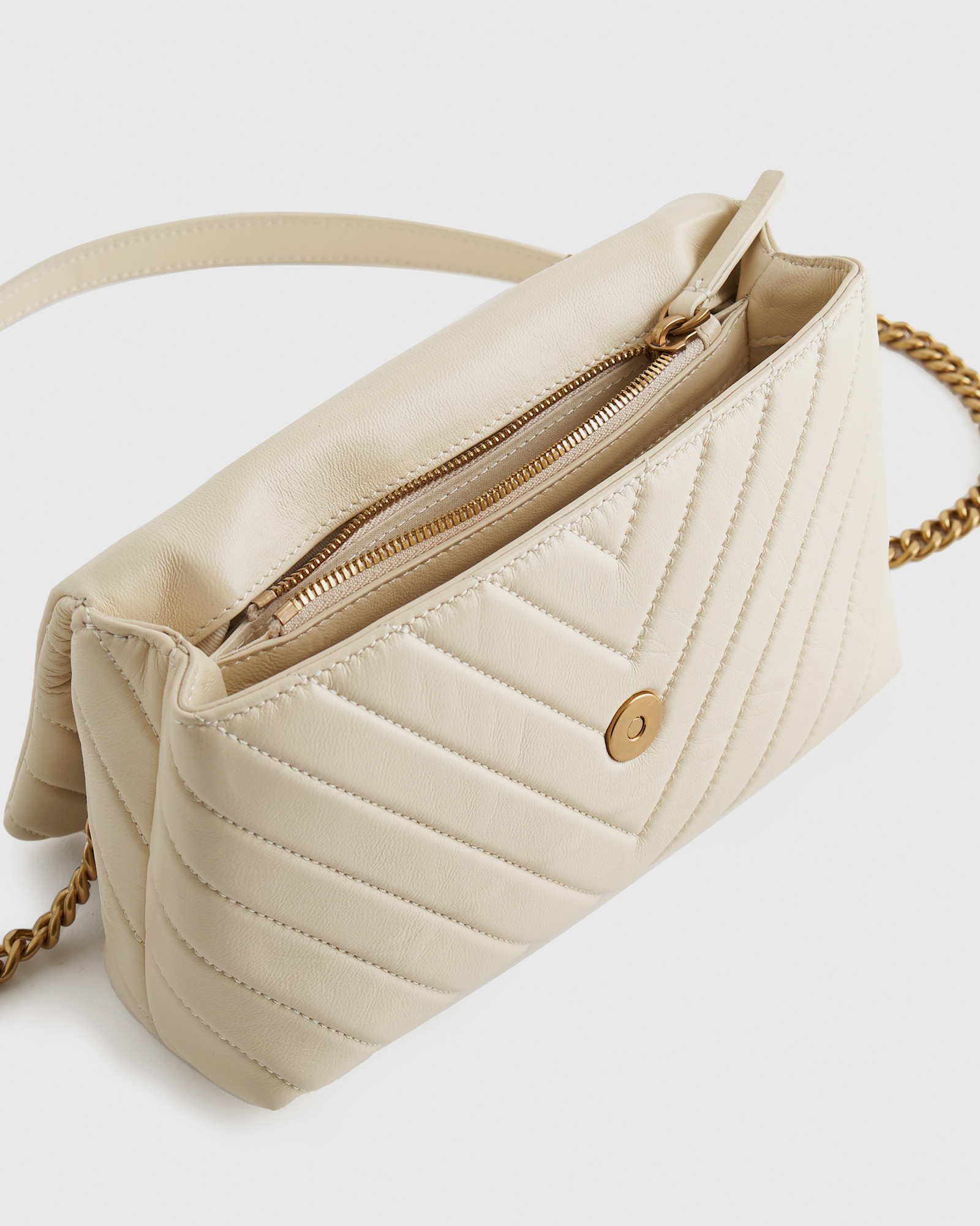 Meet the cherry on top of your outfit sundae. With sumptuous Italian lamb leather quilted into a chevron pattern and a luxe chain strap, this bag will elevate even the most laid-back ensembles. And thanks to the adjustable strap, you’ve got options—wear as a shoulder bag or as a cute crossbody.
